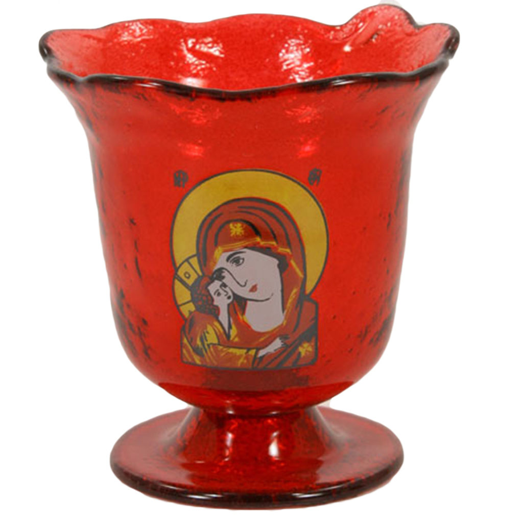 ΕΠΙΤΡΑΠΕΖΙΟ ΚΑΝΔΗΛΙ ΑΠΟ ΧΕΙΡΟΠΟΙΗΤΟ ΓΥΑΛΙ ΒΑΜΜΕΝΟ ΜΕ ΑΝΘΕΚΤΙΚΟ ΧΡΩΜΑ ΚΑΙ ΜΕ ΤΗΝ ΕΙΚΟΝΑ ΤΗΣ ΠΑΝΑΓΙΑΣ.
