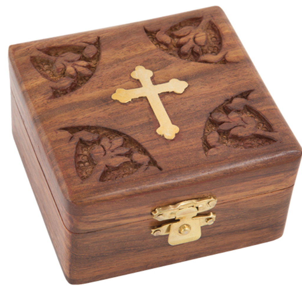 ΞΥΛΙΝΟ ΚΟΥΤΙ ΣΤΑΥΡΟΣ ΦΥΛΛΑ ΜΕ ΜΕΤΑΛΛΙΚΑ ΣΤΟΙΧΕΙΑ Μήκος 5.00 cm Υψος 5.00 cm Πλάτος 5.00 cm