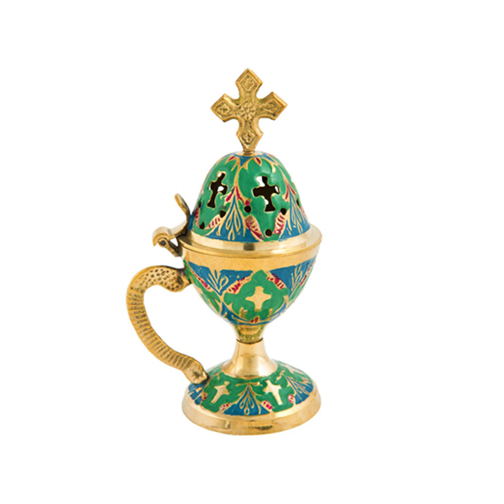 ΘΥΜΙΑΤΟ ΜΠΡΟΥΤΖΙΝΟ ΧΡΩΜΑΤΙΣΤΟ ΜΕ ΕΠΙΣΤΡΩΣΗ ΣΜΑΛΤΟΥ ΣΕ ΠΡΑΣΙΝΟ ΧΡΩΜΑ Ύψος: 15.00cm