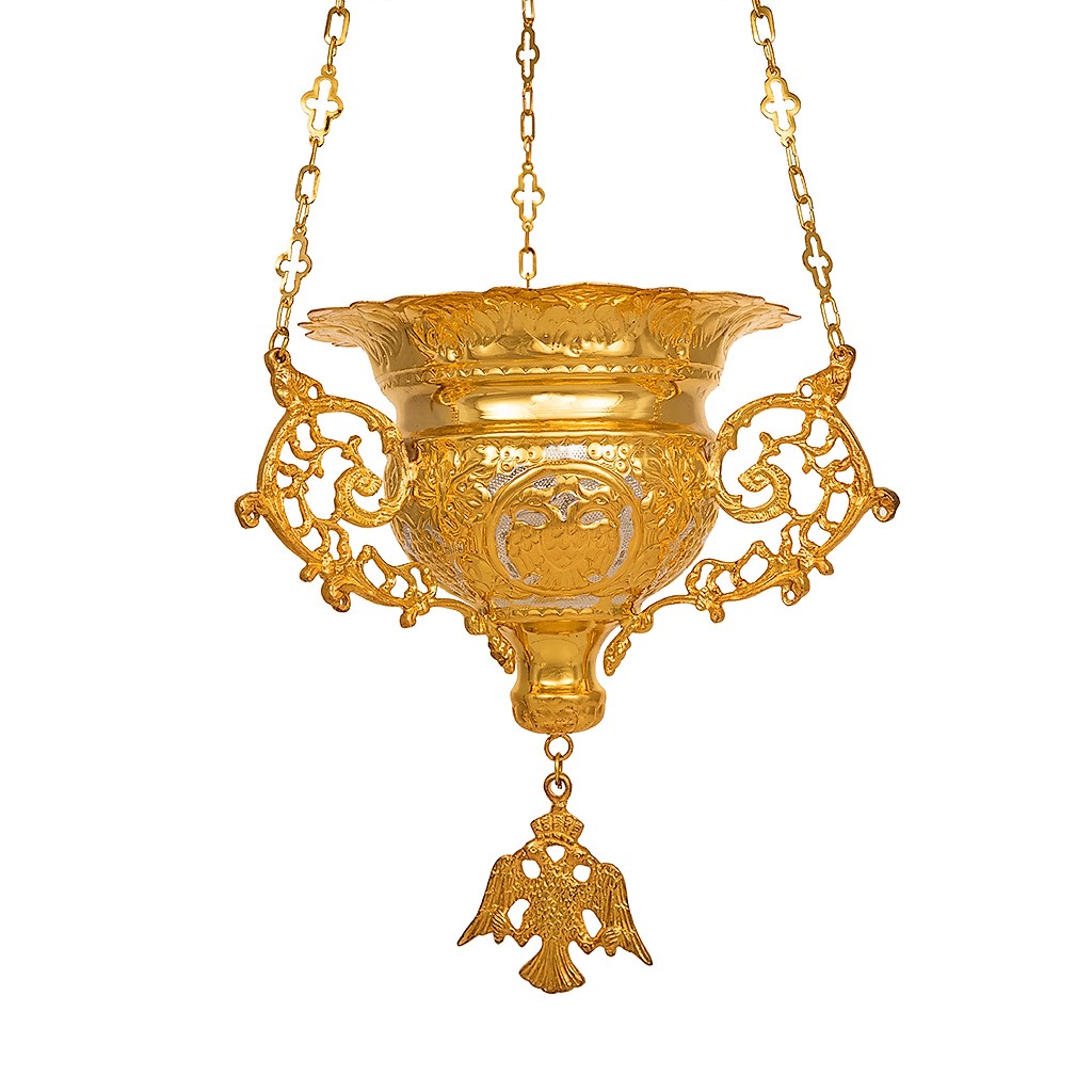 ΚΑΝΔΗΛΙ ΒΥΖΑΝΤΙΝΟ ΔΙΧΡΩΜΟ ΚΡΕΜΑΣΤΟ ΔΙΑΣΤΑΣΕΙΣ: 25 Χ 19 cm