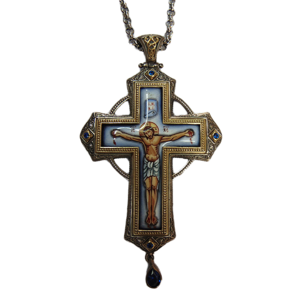 ΣΤΑΥΡΟΣ ΕΠΙΣΤΗΘΙΟΣ ΑΣΗΜΕΝΙΟΣ 925° ΜΕ ΡΩΣΙΚΟ ΣΜΑΛΤΟ