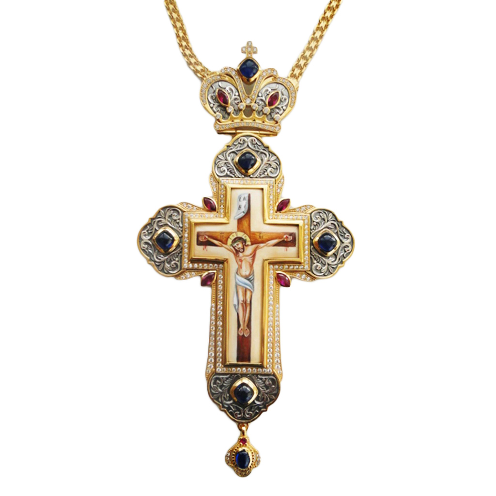ΑΣΗΜΕΝΙΟΣ ΕΠΙΣΤΗΘΙΟΣ ΣΤΑΥΡΟΣ 925° ΜΕ ΡΩΣΙΚΟ ΣΜΑΛΤΟ Διαστάσεις : 19 x 11