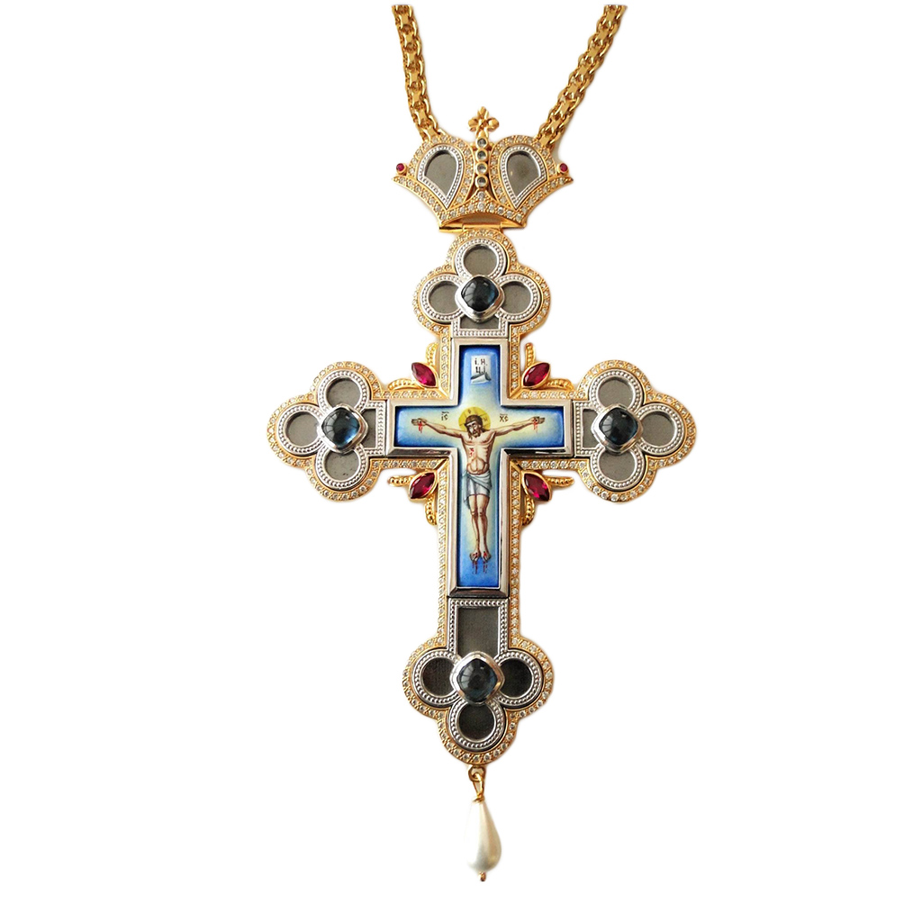ΣΤΑΥΡΟΣ ΕΠΙΣΤΗΘΙΟΣ ΑΣΗΜΕΝΙΟΣ 925° ΜΕ ΡΩΣΙΚΟ ΣΜΑΛΤΟ 19223SB