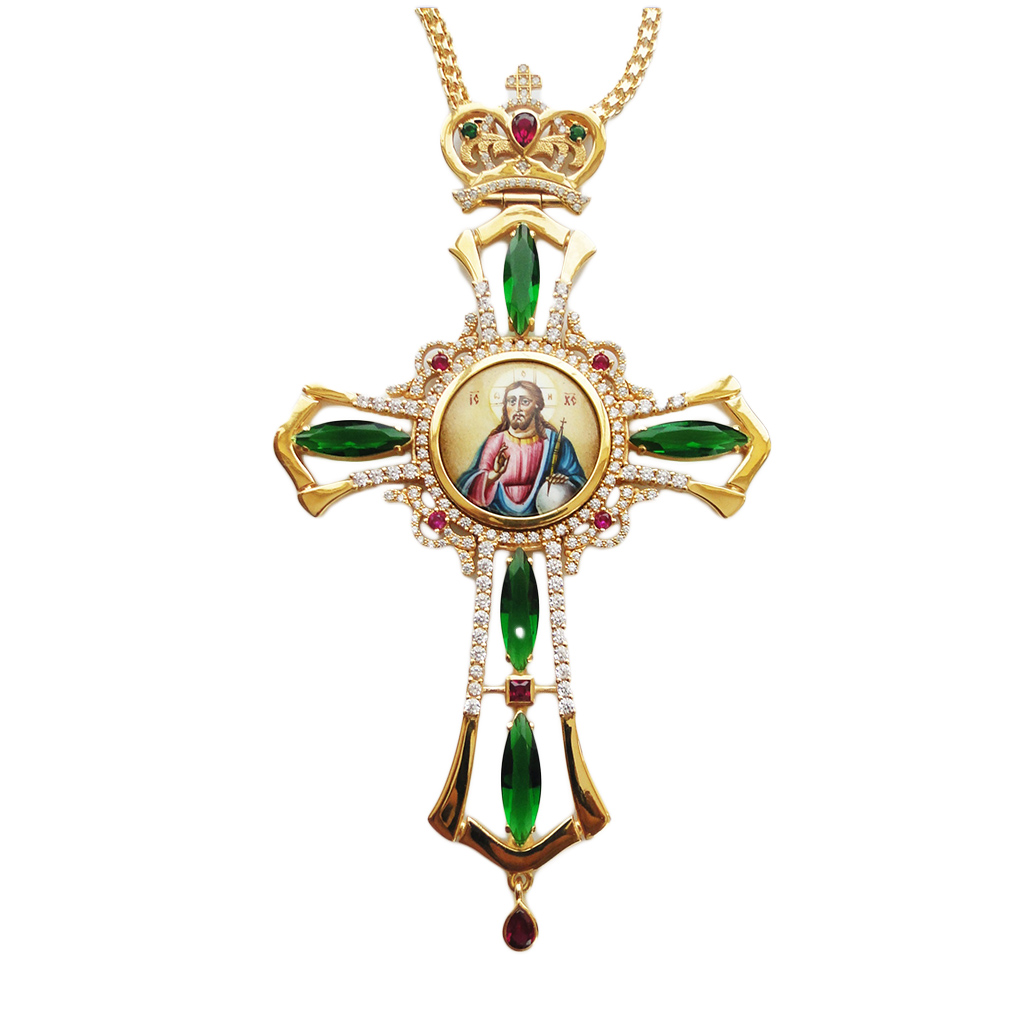 ΑΣΗΜΕΝΙΟΣ ΕΠΙΣΤΗΘΙΟΣ ΣΤΑΥΡΟΣ 925° ΜΕ ΡΩΣΙΚΟ ΣΜΑΛΤΟ Διαστάσεις : 18 x 10
