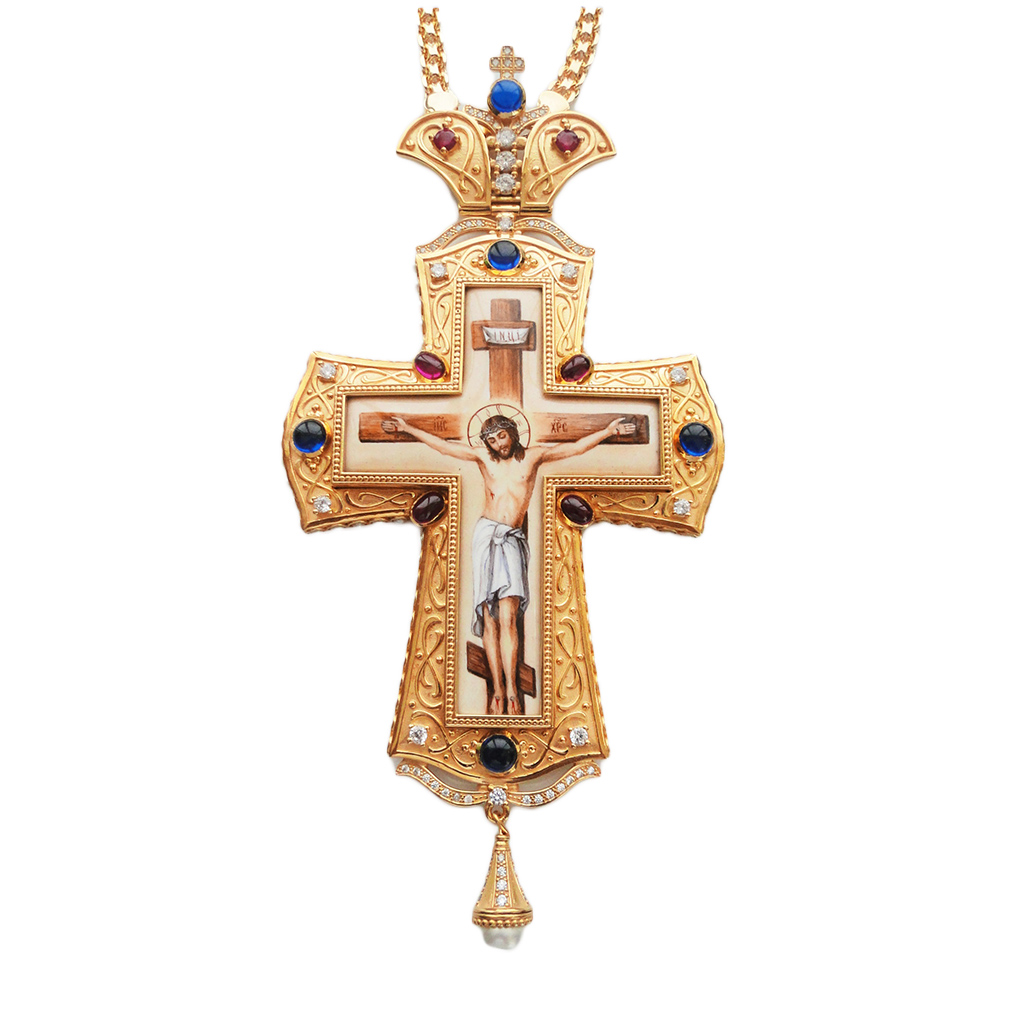 ΑΣΗΜΕΝΙΟΣ ΕΠΙΣΤΗΘΙΟΣ ΣΤΑΥΡΟΣ 925° ΜΕ ΡΩΣΙΚΟ ΣΜΑΛΤΟ Διαστάσεις : 18 x 9