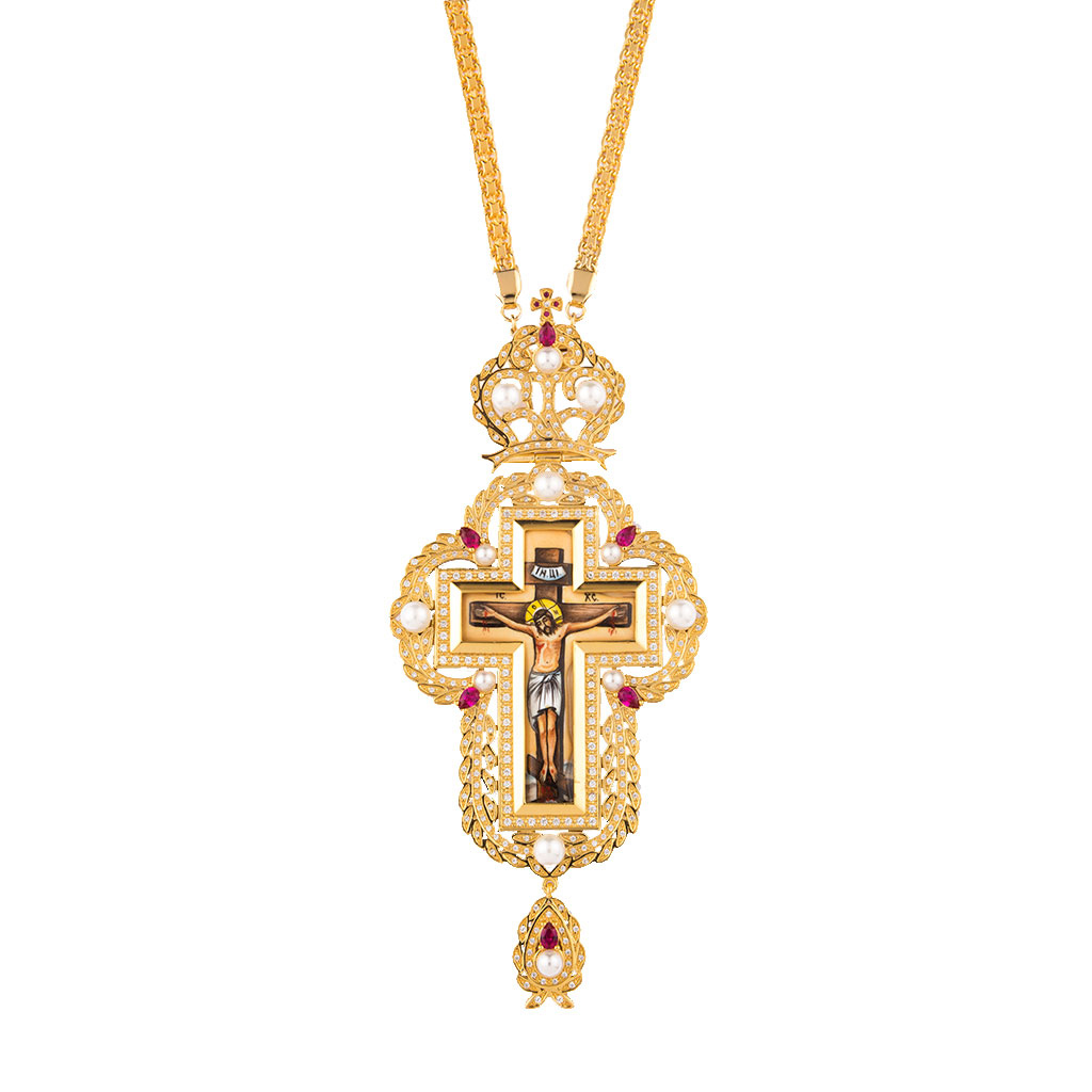 ΑΣΗΜΕΝΙΟΣ ΕΠΙΣΤΗΘΙΟΣ ΣΤΑΥΡΟΣ 925° ΜΕ ΡΩΣΙΚΟ ΣΜΑΛΤΟ