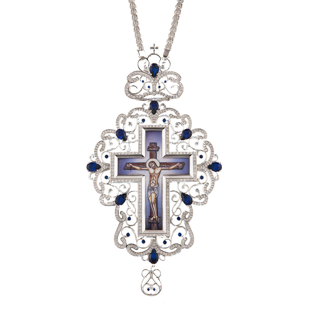 ΑΣΗΜΕΝΙΟΣ ΕΠΙΣΤΗΘΙΟΣ ΣΤΑΥΡΟΣ 925° ΜΕ ΡΩΣΙΚΟ ΣΜΑΛΤΟ