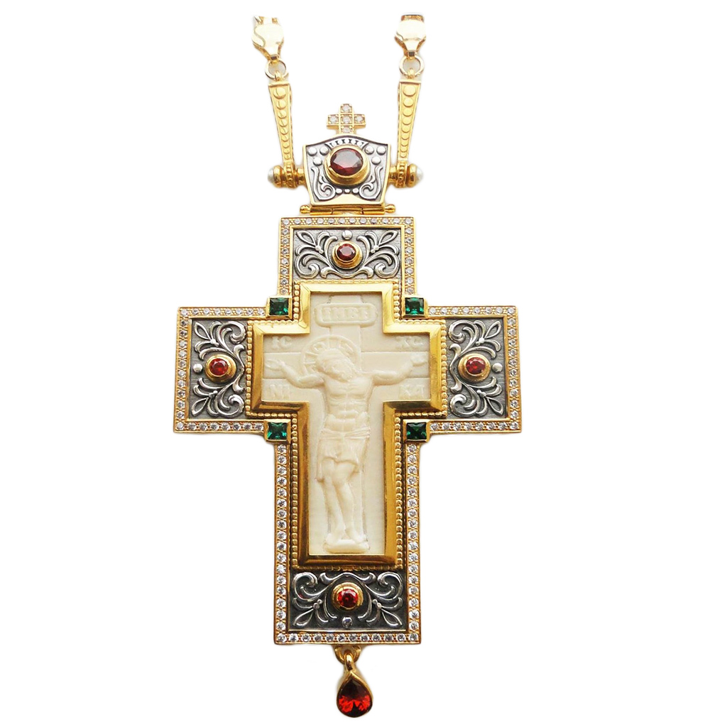ΑΣΗΜΕΝΙΟΣ ΕΠΙΣΤΗΘΙΟΣ ΣΤΑΥΡΟΣ 925° ΜΕ ΣΚΑΛΙΣΤΟ ΕΛΕΦΑΝΤΟΔΟΝΤΟ Διαστάσεις : 13 x 7