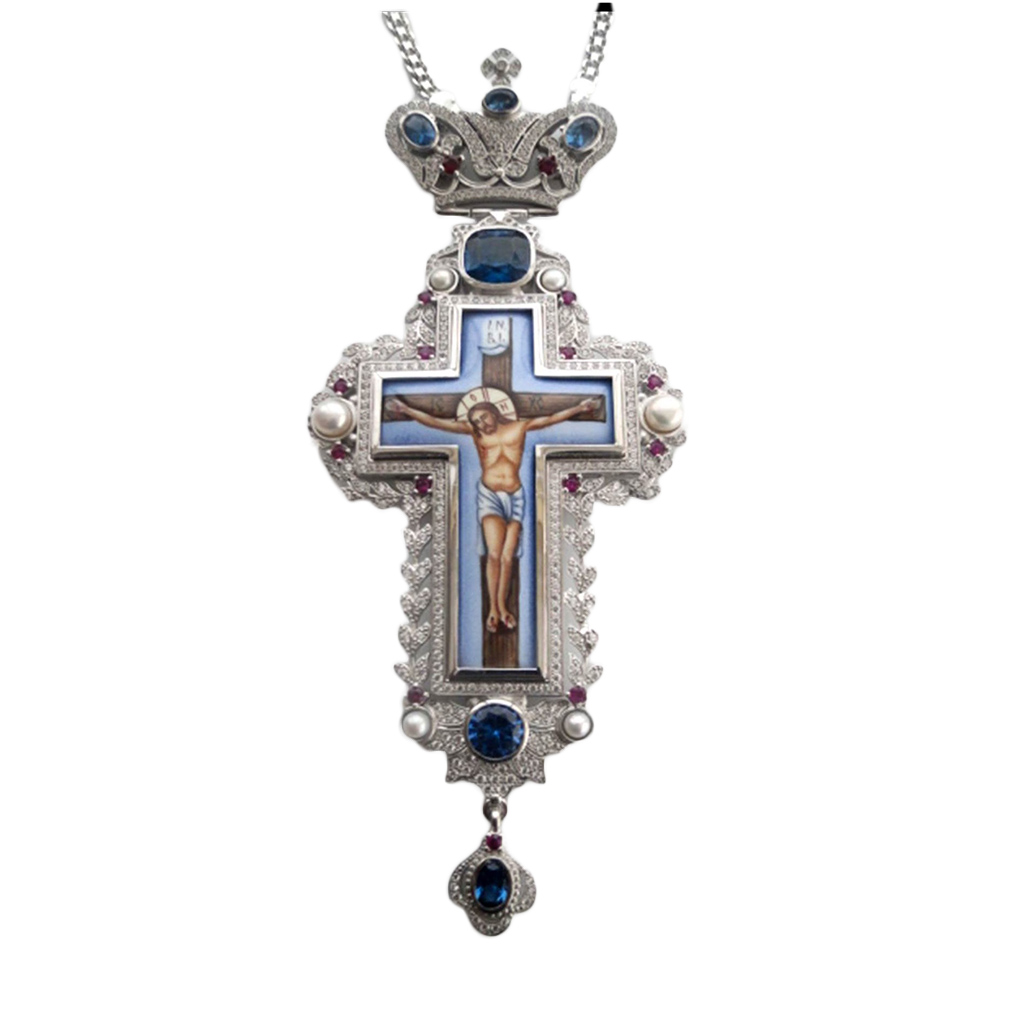 ΑΣΗΜΕΝΙΟΣ ΕΠΙΣΤΗΘΙΟΣ ΣΤΑΥΡΟΣ 925° ΜΕ ΡΩΣΙΚΟ ΣΜΑΛΤΟ Διαστάσεις : 18 x 8