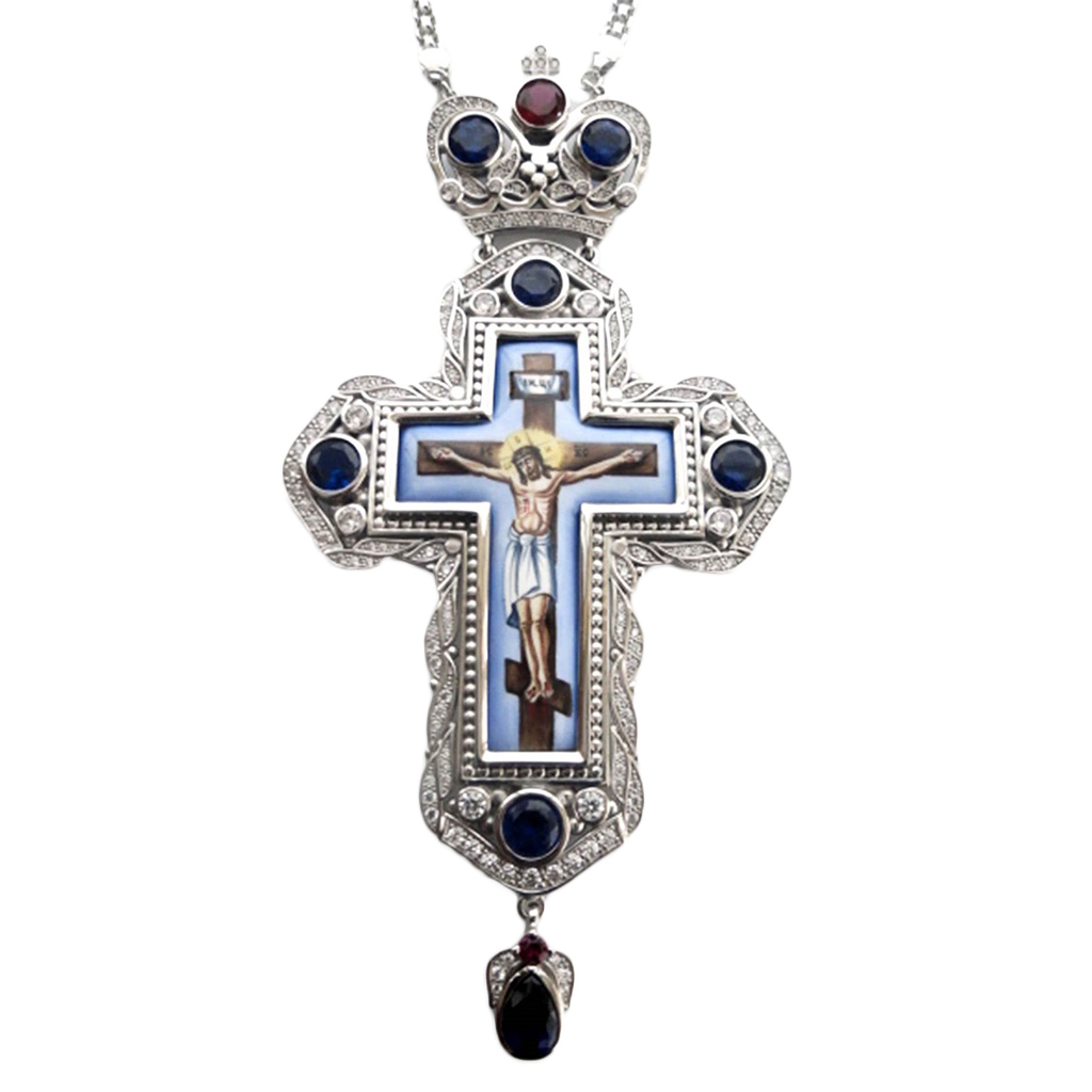 ΑΣΗΜΕΝΙΟΣ ΕΠΙΣΤΗΘΙΟΣ ΣΤΑΥΡΟΣ 925° ΜΕ ΡΩΣΙΚΟ ΣΜΑΛΤΟ Διαστάσεις : 17 x 8