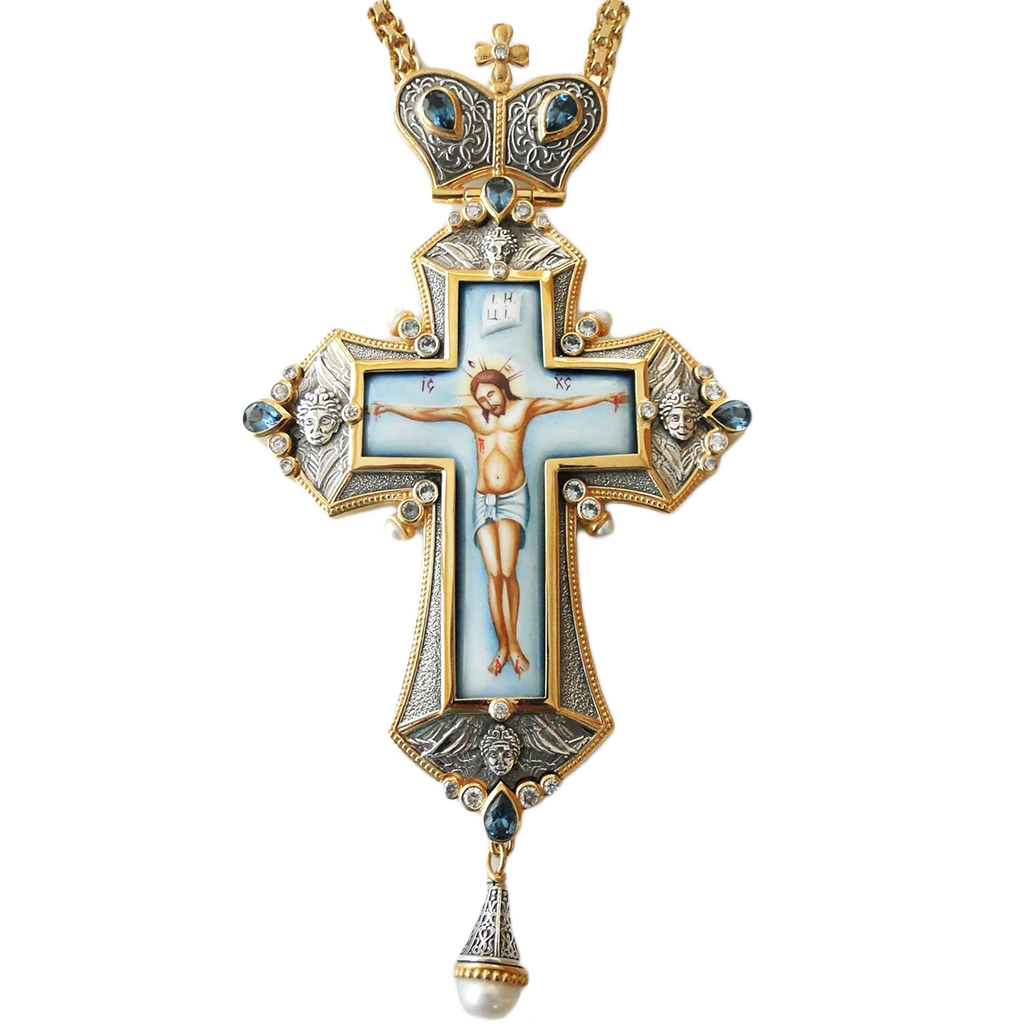 ΑΣΗΜΕΝΙΟΣ ΕΠΙΣΤΗΘΙΟΣ ΣΤΑΥΡΟΣ 925° ΜΕ ΡΩΣΙΚΟ ΣΜΑΛΤΟ Διαστάσεις : 15 x 8