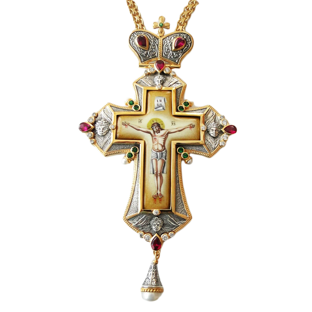 ΑΣΗΜΕΝΙΟΣ ΕΠΙΣΤΗΘΙΟΣ ΣΤΑΥΡΟΣ 925° ΜΕ ΡΩΣΙΚΟ ΣΜΑΛΤΟ Διαστάσεις : 15 x 8