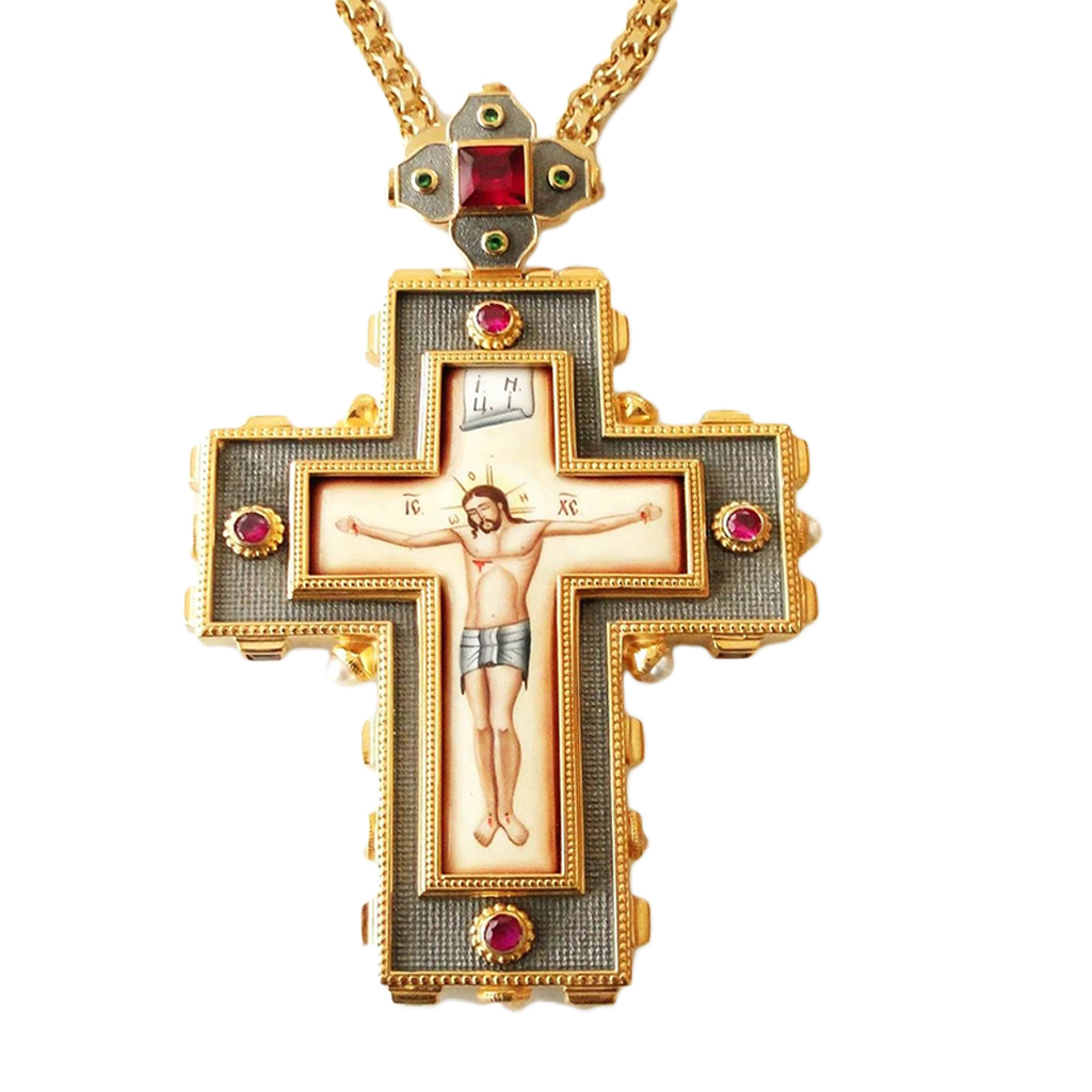 ΑΣΗΜΕΝΙΟΣ ΕΠΙΣΤΗΘΙΟΣ ΣΤΑΥΡΟΣ 925° ΜΕ ΡΩΣΙΚΟ ΣΜΑΛΤΟ Διαστάσεις : 12 x 8