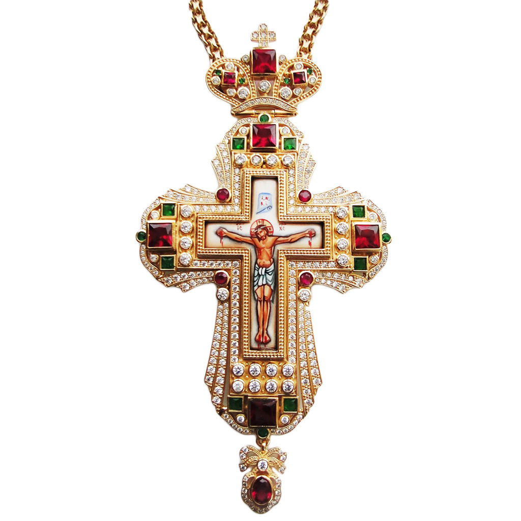 ΕΠΙΧΡΥΣΟΣ ΕΠΙΣΤΗΘΙΟΣ ΣΤΑΥΡΟΣ ΜΕ ΡΩΣΙΚΟ ΣΜΑΛΤΟ Διαστάσεις : 16 x 9