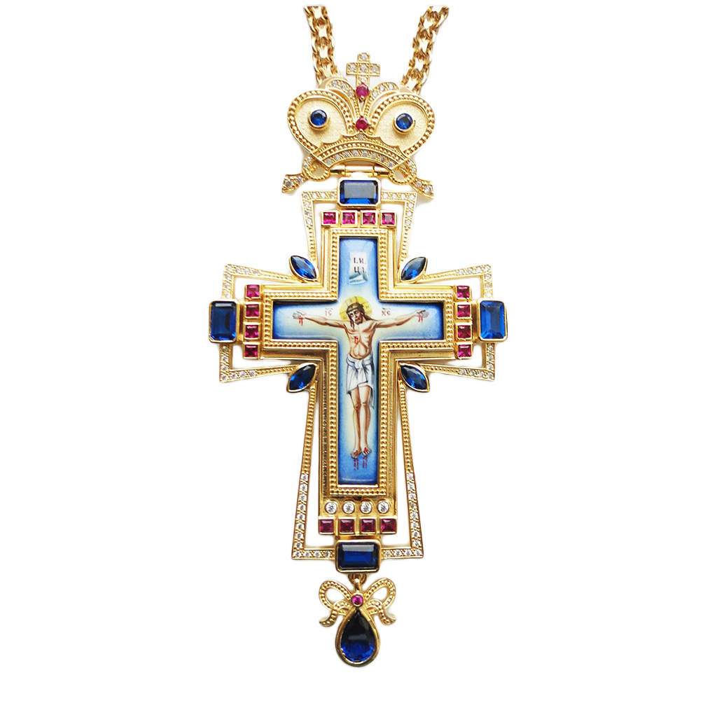 ΕΠΙΧΡΥΣΟΣ ΕΠΙΣΤΗΘΙΟΣ ΣΤΑΥΡΟΣ ΜΕ ΡΩΣΙΚΟ ΣΜΑΛΤΟ Διαστάσεις : 15 x 8