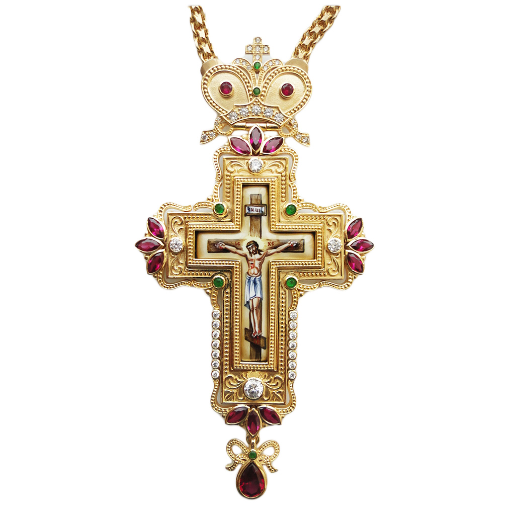 ΕΠΙΧΡΥΣΟΣ ΕΠΙΣΤΗΘΙΟΣ ΣΤΑΥΡΟΣ ΜΕ ΡΩΣΙΚΟ ΣΜΑΛΤΟ Διαστάσεις : 15 x 8