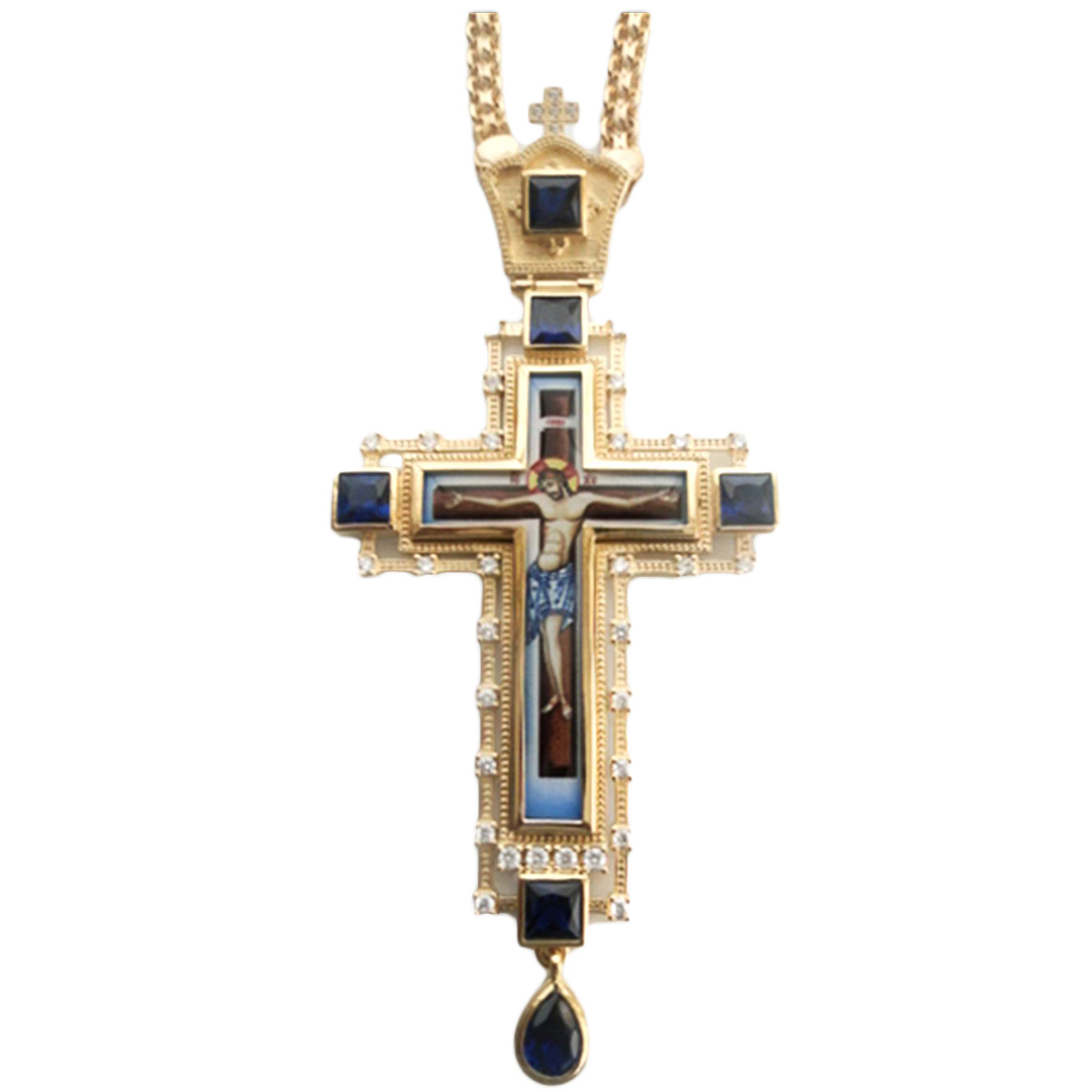ΕΠΙΧΡΥΣΟΣ ΕΠΙΣΤΗΘΙΟΣ ΣΤΑΥΡΟΣ ΜΕ ΡΩΣΙΚΟ ΣΜΑΛΤΟ Διαστάσεις : 15 x 8