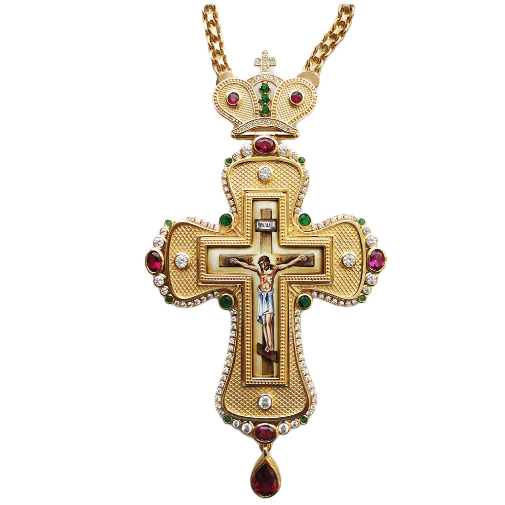 ΣΤΑΥΡΟΣ ΕΠΙΣΤΗΘΙΟΣ ΕΠΙΧΡΥΣΟΣ ΜΕ ΡΩΣΙΚΟ ΣΜΑΛΤΟ Διαστάσεις : 15 x 8